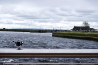 Un uccellino si asciugava, aggrovigliandosi nelle piume, subito dopo la pioggia di Galway.
